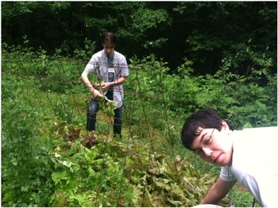 In the afternoon, the kids went to visit a private garden in Leicester, owned and operated by one of Ghislaine’s regular cooking students. Everyone really enjoyed the tour, seeing all the vegetables, and forty different kinds of tomato plants! We also spent a short time pulling weeds out of one of the garden areas, just in time before a storm came and rain started pouring. We took refuge under the large veranda, in front of the house, and enjoyed tasting several kinds of honey produced by Kevin. Delicious!